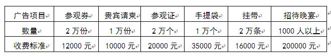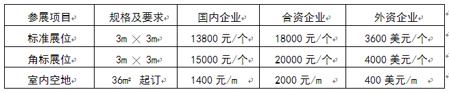 展位說明: A.標準展位配置:中英文楣板、日光燈兩盞、隔板(高度250cm,可用高度246cm)、洽談桌一張、椅子兩把、可容400W/220V電源插座一個及地毯; B.訂光地的展商自行負責展位布置的所需費用,詳見參展商手冊。 技術交流會: 國內企業20000元/小時,外資企業4000美元/小時,提供:60-100人左右會議室、投影儀、屏幕、講臺、椅子、音響、紙、筆、飲用水、展前宣傳等。 展會會刊: