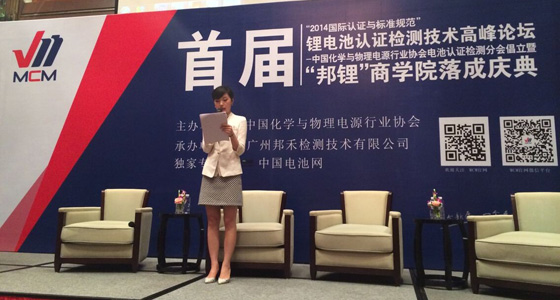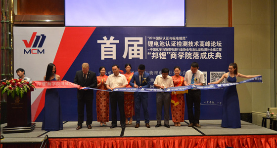 中國化學及物理電源行業協會電池認證檢測分會倡起儀式暨分會成立宣言全球首發; MCM廣州邦禾檢測創始人苗春茂先生啟動“邦鋰”商學院落成慶典,介紹“邦鋰”商學院的成立將對行業帶來的新動力。
