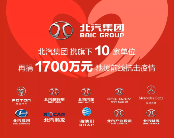 北汽集團及成員單位已累計捐款捐物4300萬元 全力支援疫情防控
