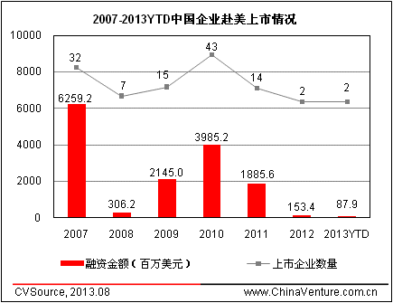 圖1 2007-2013YTD中國企業(yè)赴美上市情況