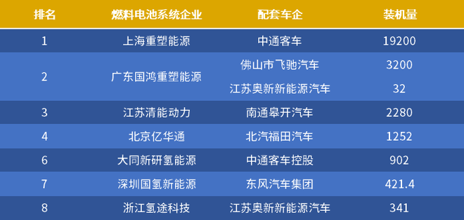 2019年1-7月氫燃料電池客車裝機量(單位:kW)