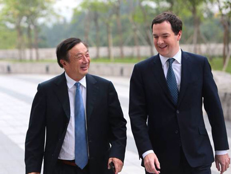 2013年,華為創(chuàng)始人兼CEO任正非會(huì)見(jiàn)到訪華為深圳總部的英國(guó)財(cái)政大臣喬治·奧斯本。