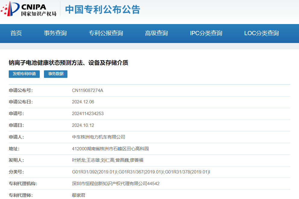 12月6日,中車(chē)株洲電力機(jī)車(chē)有限公司申請(qǐng)一項(xiàng)名為“鈉離子電池健康狀態(tài)預(yù)測(cè)方法、設(shè)備及存儲(chǔ)介 ... 查閱全文