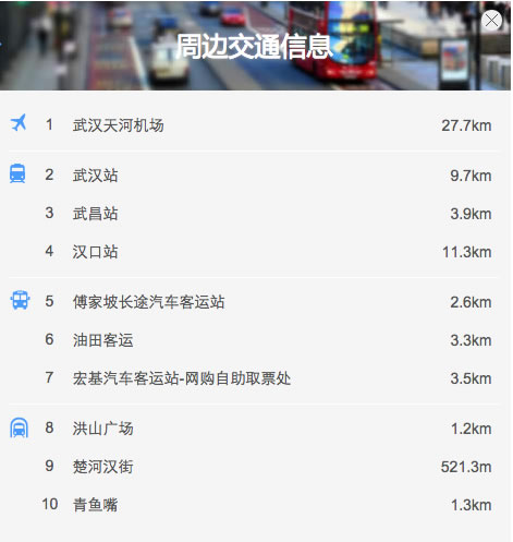 酒店無(wú)論從設(shè)計(jì)和服務(wù)理念上都崇尚獨(dú)特的文化內(nèi)涵和高品質(zhì)的舒適享受。格調(diào),智能,舒適,獨(dú)特,是我們所追求的客戶體驗(yàn)。酒店位于武昌區(qū)楚河漢街中段, 武漢中央文化區(qū)是武漢市武昌區(qū)最大的集金融、商業(yè)、娛樂(lè)購(gòu)物和旅游的商業(yè)區(qū)。交通便利,比鄰中北路公交車站和4號(hào)地鐵線楚河漢街站,河對(duì)岸即沙湖大橋與過(guò)江隧道,來(lái)往漢口與武昌僅需5分鐘。4號(hào)地鐵線可直達(dá)高鐵武漢站,走中北路上二環(huán)線可直達(dá)武漢天河機(jī)場(chǎng)僅用40分鐘。沿中北路直行2公里就是武漢歡樂(lè)谷與武漢最大的自然風(fēng)景區(qū)東湖公園。