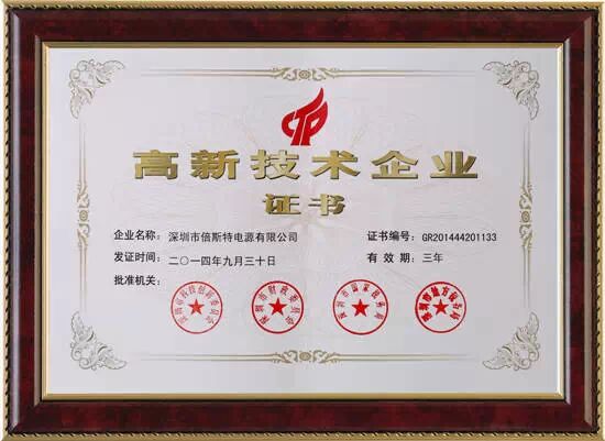 良芯移動電源品牌締造者--深圳市倍斯特電源有限公司于2014年通過國家相關部門審核認證,正式掛牌成為國家級高新技術企業。