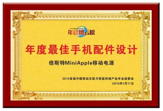 其中,“年度最佳手機配件設計獎”由倍斯特MiniApple移動電源獲得,并在頒獎現場登臺領獎,同臺領獎的華為Ascend Mate7獲得了“年度最佳智能手機獎”。
