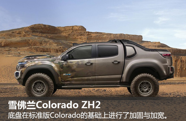 新車定位為一款中型皮卡,底盤在標準版Colorado的基礎上進行了加固與加寬,車身寬度超過2133mm,車身高度超過了1981mm,輪胎直徑為939mm,并對懸掛系統進行了升級。