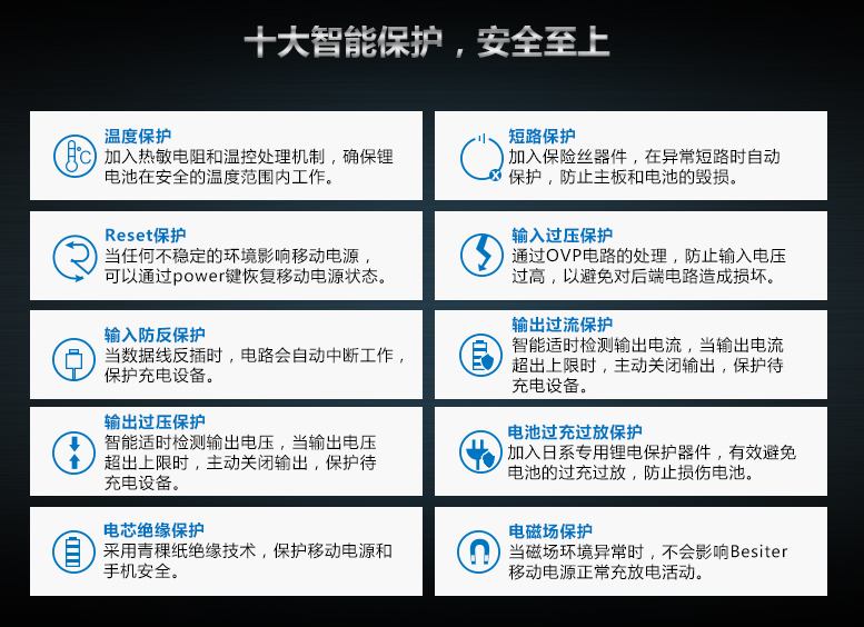 6000mAh頂級聚合物電芯,續航無限精彩。 頂級聚合物電芯,循環壽命高達500次,安全系數極高。 容量大,重量小,持久耐用,能量轉化率高。 1.5A極速充