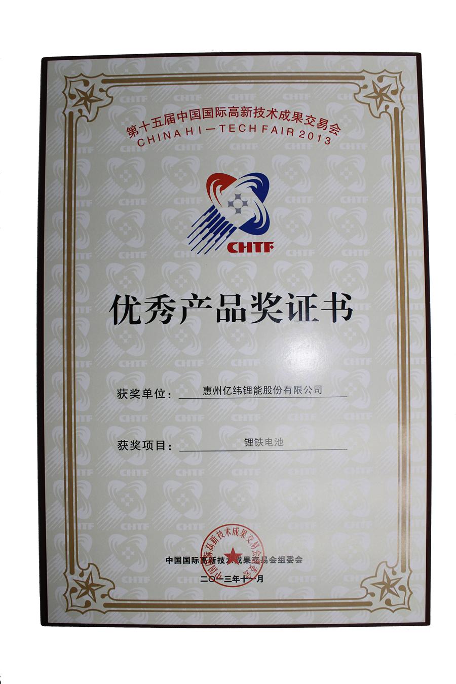 近日,億緯鋰能鋰鐵電池項(xiàng)目在第十五屆中國國際高新技術(shù)成果交易會上獲得“優(yōu)秀產(chǎn)品獎”。