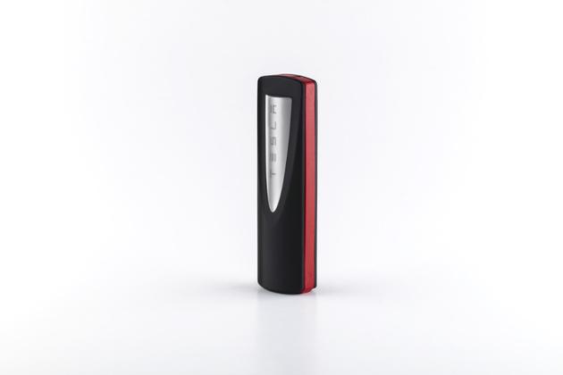 這款移動(dòng)電源采用了特斯拉充電樁的外形設(shè)計(jì),一眼看上去,就如同一個(gè)‘迷你’型的‘超級(jí)充電樁’。移動(dòng)電源使用了銀、黑、紅三種配色,移動(dòng)電源的主體為黑色,中間的特斯拉標(biāo)志為銀色,兩邊的數(shù)據(jù)線為紅色。據(jù)悉,這款移動(dòng)電源的外形設(shè)計(jì)是特斯拉在設(shè)計(jì)‘超級(jí)充電樁’時(shí)突然想到的。