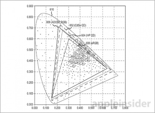 據悉,該專利名為Quantum Dot-Enhanced Display Having Dichroic Filter。據外媒報道稱,“在技術層面上來說,量子點(QD)是一種納米晶體--在某些情況下,它的個頭甚至比病毒還要小。這種將由多種不同的半導體材料制造而成的晶體將可以呈現出量子力學中特有的特點。顯示屏制造商和光學領域其他的廠家最感興趣則就是QD的發光特性。確切的說,這種材料可以“調節出”或產生非常窄的光譜。