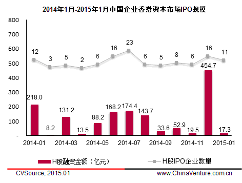 圖3 2014年1月- 2015年1月中國企業(yè)香港資本市場IPO規(guī)模