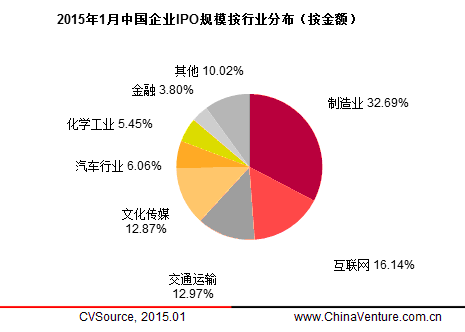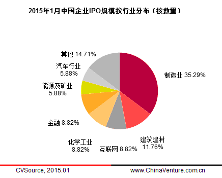 圖4 2015年1月中國企業(yè)IPO規(guī)模按行業(yè)分布(按數(shù)量)