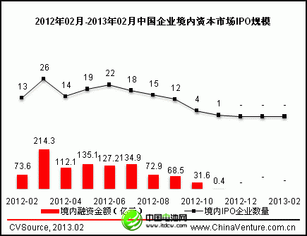 圖2 2012年02月-2013年02月中國企業境內資本市場IPO規模