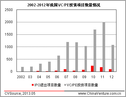 圖1 2002-2012年我國VC/PE投資項目數量情況