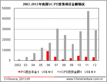 圖2 2002-2012年我國VC/PE投資項目金額情況