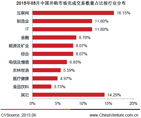 圖3 2015年05月中國(guó)并購(gòu)市場(chǎng)完成交易數(shù)量按行業(yè)分布