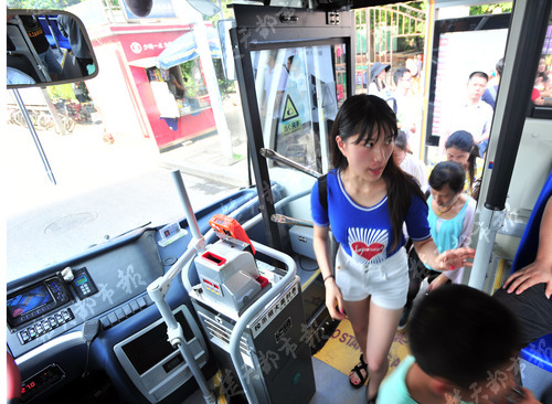 這是武漢市新購進的一千臺純電動公交車中的首批車輛。由于純電動公交與之前的天然氣、柴油公交相比,能源更環(huán)保,內(nèi)部空間更大,不少市民紛紛嘗鮮。