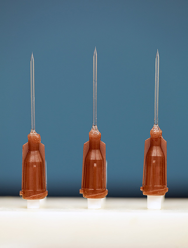 (定制的注射噴嘴,其開口只有一微米,使小空間內打印復雜結構成為可能)