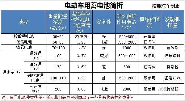 由于電動車蓄電池種類較多,其中很大部分已經被市場所淘汰,所以我們先通過一個表格大致了解下這些電池的基本特性,然后就目前市場上常見的幾種蓄電池再進行說明。