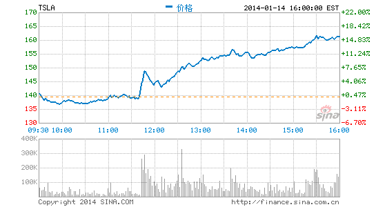 新浪財(cái)經(jīng)訊 北京時(shí)間1月15日凌晨消息,據(jù)來(lái)自于底特律汽車展的媒體報(bào)道稱,去年第四季度特斯拉(TSLA)汽車的出貨量為6900輛,高于公司此前預(yù)期的“略少于6000輛”。特斯拉股價(jià)收高15.74%。