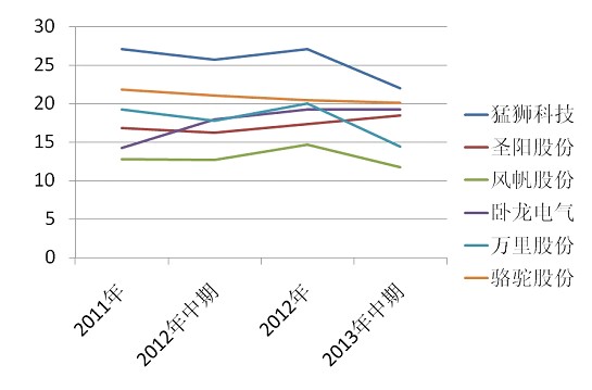 據猛獅科技2012年的年報披露,公司產品毛利率高達25.86%,處于行業上市公司最高水平,遠高于同行業平均17.40%,在同行業中猛獅科技并未有規模效應和壟斷性來獲取較高毛利率的優勢。猛獅科技2011年毛利率高達27.09%,隨后逐年下滑,3季度更是下滑到19.76%,接近行業平均水平,所以猛獅科技2011年27%左右的毛利率或存在一定的水分。而公司近期的毛利率水平或回歸為猛獅科技真實的狀況。所以不排除猛獅科技財務上有粉飾報表的嫌疑。