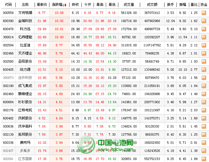 來自大洋彼岸的“特斯拉效應”,引發A股新能源汽車和鋰電池相關概念股全線啟動。鋰電池概念股今日大漲逾1%,萬向錢潮、金瑞科技、比亞迪、億緯鋰能4股漲停,科力遠等漲幅居前。