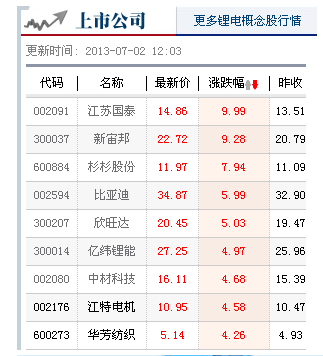 周二早盤鋰電池股受利好刺激股價再次爆發(fā),新宙邦、江蘇國泰漲停,此外,杉杉股份、比亞迪、欣旺達(dá)等漲幅靠前。