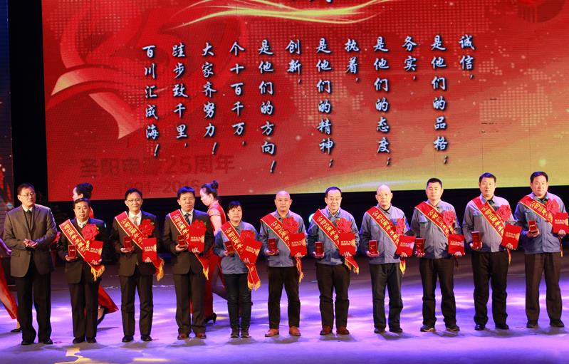 本次大會上,對榮獲公司“25周年特別紀念獎”、“25周年發(fā)展貢獻獎”和“25周年圣陽十大感動人物”的獲獎員工進行了表彰獎勵。