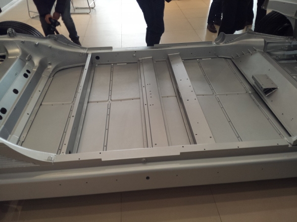 7000多節18650電池被放在了Model S這塊底盤鋼板上