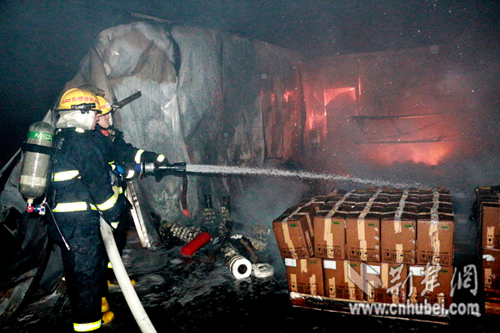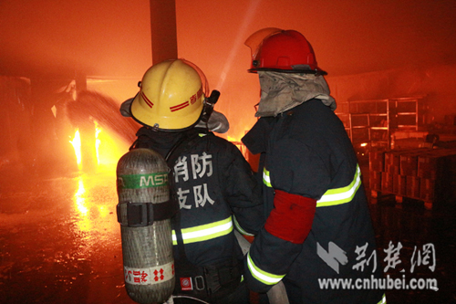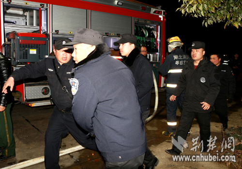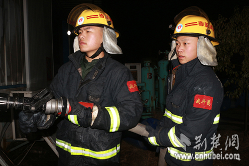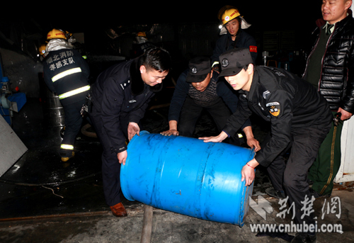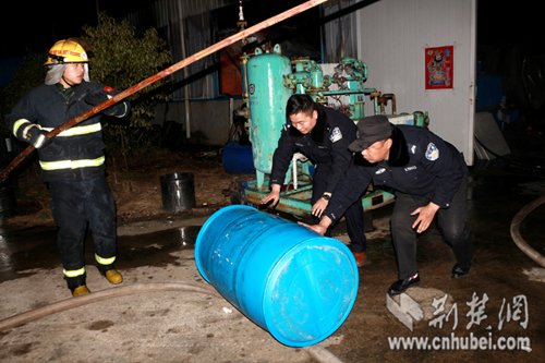 接到報(bào)警后,孝昌消防大隊(duì)立即出動(dòng)了3臺(tái)水罐車和15名消防隊(duì)員趕到現(xiàn)場(chǎng);孝昌縣澴城派出所值班民警岳星,也帶領(lǐng)8名聯(lián)勤隊(duì)員趕到了現(xiàn)場(chǎng)。到達(dá)現(xiàn)場(chǎng)后,當(dāng)孝昌消防大隊(duì)大隊(duì)長錢光輝,了解到該廠倉庫中,堆放著一百多個(gè)塑料桶裝的易燃物后,立即指揮消防隊(duì)員從廠房西側(cè)和東側(cè)各出2支水槍,全力阻止火勢(shì)蔓延;一邊指揮民警和特勤隊(duì)員,轉(zhuǎn)移倉庫中堆放的塑料桶裝可燃物;隨后,撥打了孝感市消防支隊(duì)和相關(guān)部門的電話,請(qǐng)求援助。