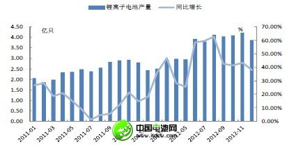 2012年以來,鋰電池產量的月均同比增速在25%以上,高于去年的同期增速;12月份,鋰電池產量繼續保持高增長,同比增長達到37.99%。我們認為鋰電規模的擴大利好上游材料企業,尤其是盈利能力較好的電解液和負極材料企業。