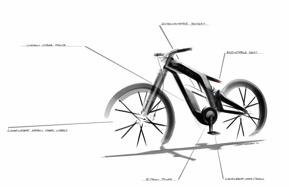 據國外媒體報道,奧迪公司打造了一款電動概念自行車,名為“Wrthersee”,時速可達到50英里(約合每小時80公里)。這款電動自行車遵循賽車的設計原則,擁有自行車迷能夠想到的一切功能,堪稱自行車家族的F1。