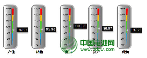 從分指標(biāo)運行指數(shù)來看,2013年2月中輕產(chǎn)值景氣指數(shù)94.89、銷售景氣指數(shù)為95.90、出口景氣指數(shù)101.31、資產(chǎn)景氣指數(shù)96.97、利潤景氣指數(shù)94.35。