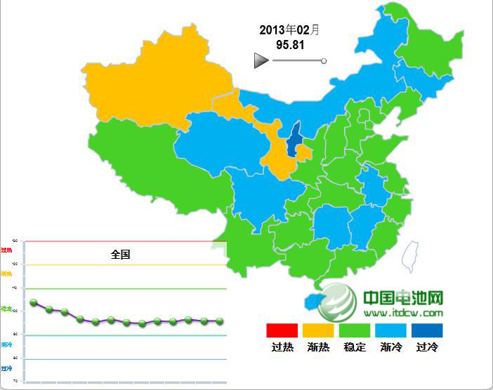 從分地區(qū)景氣運行情況來看,新疆、甘肅景氣指數(shù)進(jìn)入趨熱區(qū)間、寧夏處于過冷區(qū)間。