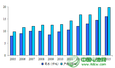 2005-2015年碳酸鋰的供需情況分析與預測  圖/中國電池網-中國電池雜志