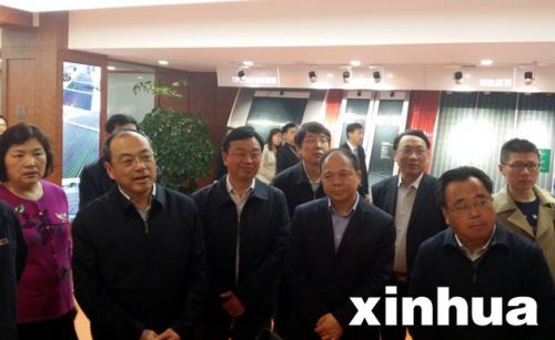 武漢市委書記阮成發(fā)(左二)一行參觀漢能公司。陳敢 攝