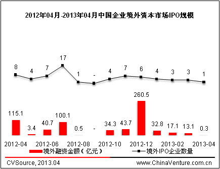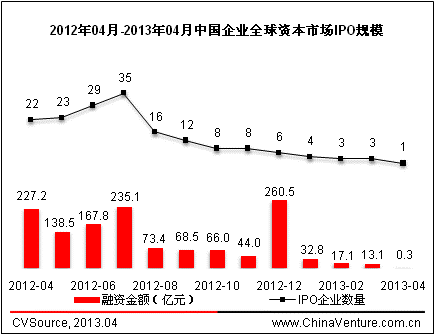 圖1 2012年04月-2013年04月中國企業(yè)全球資本市場IPO規(guī)模
