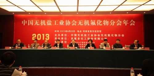 4月20日,中國無機鹽工業協會無機氟化物分會2013年年會在焦作隆重召開。會議由中國無機鹽工業協會無機氟化物分會主辦、多氟多化工股份有限公司承辦,中國無機鹽工業協會無機氟化物分會副會長侯紅軍主持會議。