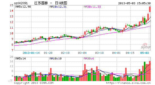 江蘇國泰(14.73,1.34,10.01%)(002091)公布2013年一季報。2013年一季度,公司實現營業收入12.27億元,同比增長48.75%;實現營業利潤4811萬元,同比增長14.17%;實現歸屬于上市公司股東的凈利潤3465萬元,同比增長9.19%,基本每股收益0.10元。
