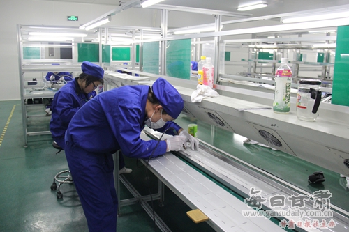 技術(shù)人員組裝(串聯(lián))光伏板 張望東 攝