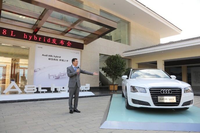 2013年5月29日,一汽-大眾奧迪在“China. Land of quattro?見地未來”大型活動的第一條線路——“綠色和諧之旅”的終點云南騰沖,舉辦“綠色科技 榮耀上市”活動,宣布全球最高效的全混C級豪華轎車——全新奧迪A6 40 hybrid和全混D級豪華轎車——全新奧迪A8L 40 hybrid正式上市,售價分別為63.8萬元和109萬元。這兩款混合動力的加入,使全新奧迪A6與全新奧迪A8產品形象更為豐滿,滿足勇于超越自我、崇尚綠色環保、注重生活品質、引領未來潮流的社會精英們的需求。