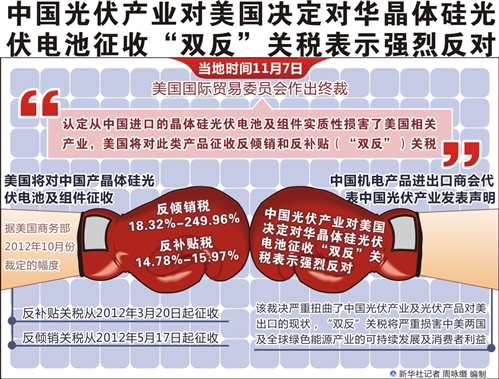 2012年12月7日,美國商務部發布命令,自12月7日起,開始向中國進口太陽能電池征收關稅。預計該關稅將至少為期五年。