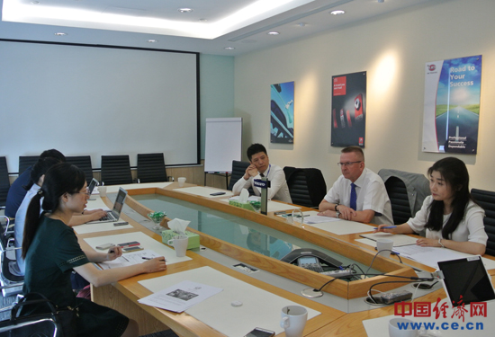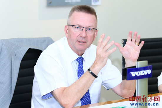 圖為沃爾沃集團(tuán)中國(guó)區(qū)總裁克勞斯先生接受媒體采訪。中國(guó)經(jīng)濟(jì)網(wǎng)記者 金艷/攝