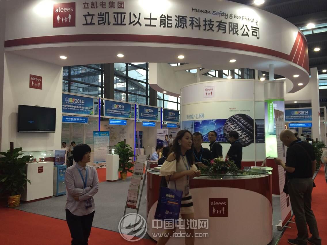 中國電池雜志-中國電池網(微號:mybattery)6月19日訊(肖何 梁小婧 丁丁 深圳報道)18日上午,由中國化學與物理電源行業協會主辦的第十一屆中國國際電池技術交流會/展覽會(CIBF 2014)在深圳國際會展中心隆重開展,這是中國電池行業第一個通過商標注冊保護的國際性會展。CIBF 2014期間,參展商還將舉辦20多場新產品新技術專題發布會,同期還將舉辦“2014中國國際電池前沿技術交流會”和“國際買家采購洽談會”。中國電池網(微號:mybattery)應邀全程圖文直播,展位號為6E02。圖為立凱電集團展位。