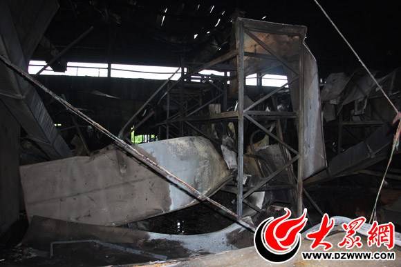 今天上午,大眾網(wǎng)記者來到位于成武縣的山東馳翔新能源科技有限公司倉庫區(qū),該倉庫外墻大面積燒黑,玻璃窗破裂,進(jìn)出門貼上了成武縣公安消防大隊(duì)查封條,倉庫內(nèi)的物品以及貨架被燒得一片狼藉。