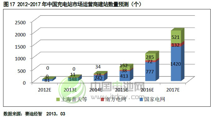 我們預測未來的電動汽車充電站市場競爭格局是“電網公司主導,充換電模式并行,電池租賃加速推廣, 分布式充電樁領跑,民營企業加入運營”。壟斷了電源輸送環節的國家電網和南方電網