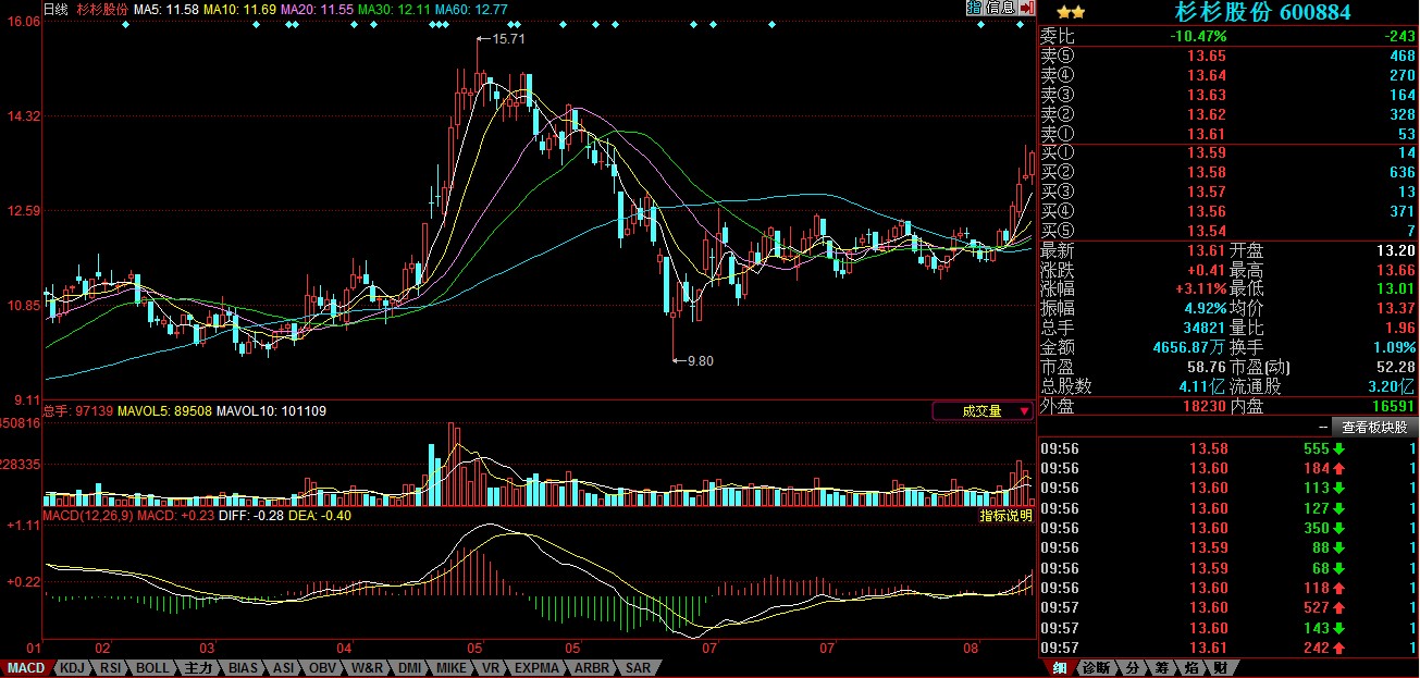 據公司2013年半年報顯示,報告期內,面對鋰電池材料行業產能過剩和日趨激烈的市場競爭,杉杉股份實施積極穩健的經營策略,鋰電池材料業務總體繼續呈現穩步上升的發展態勢。上半年實現主營業務收入 97450.32萬元,同比增長 28.60%,其中,正極材料、負極材料和電解液業務分別實現主營業務收入56068.04 萬元、29231.21 萬元和 8507.97 萬元;實現歸屬于上市公司股東的凈利潤 5402.38 萬元,同比增長 14.91%,其中,正極材料、負極材料和電解液業務分別實現歸屬于上市公司股東的凈利潤 1356.79 萬元、2619.10 萬元和 1395.42 萬元。激烈的市場競爭引起鋰電材料毛利率下降,導致凈利潤增幅小于收入增幅。
