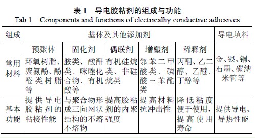 表1 導電膠粘劑的主要組成成分及其功能