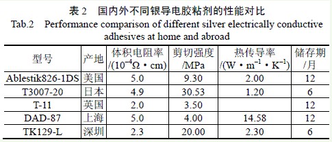 表2 國內外不同銀導電膠粘劑的性能對比
